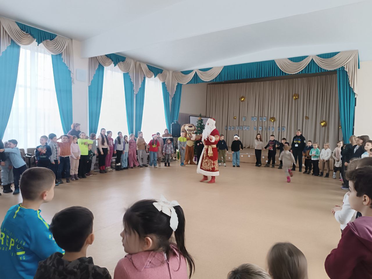Святий Миколай разом зі своїм другом Левом запалили залу з перших хвилин — конкурси, руханки, сміх і радість наповнили залу так, що навіть дорослі посміхались, ніби знову стали дітьми.