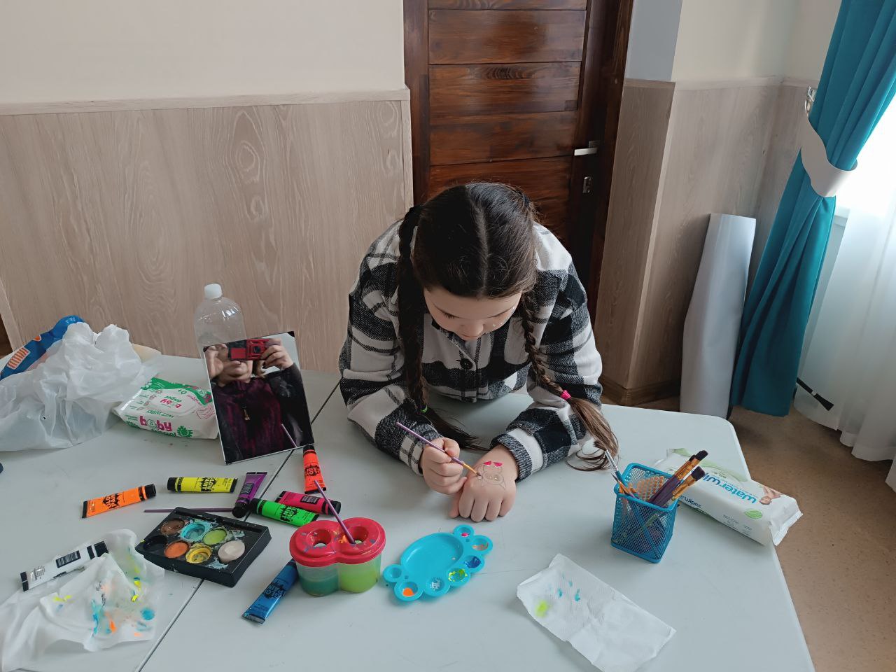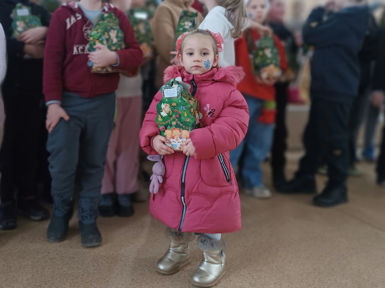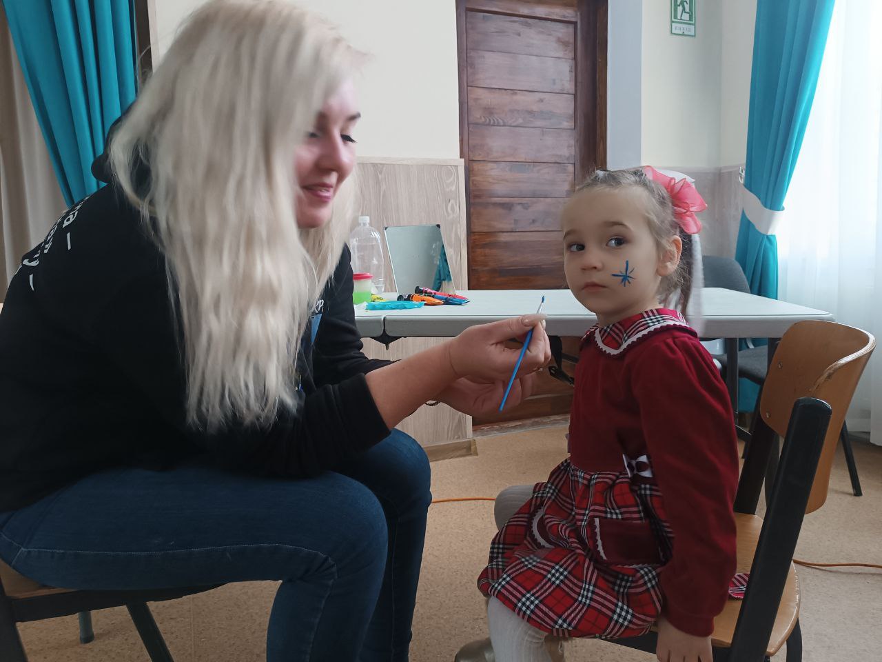 Художниця створювала маленькі дива просто на очах: малювала на обличчях дітей чарівні сніжинки, зірочки, новорічні візерунки аквагриму.