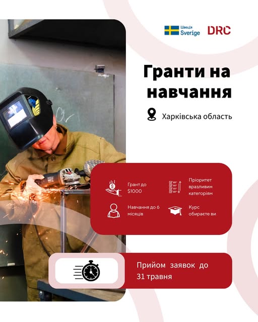 DRC надає гранти на навчання до $1000* для отримання професійної освіти чи підвищення кваліфікації!