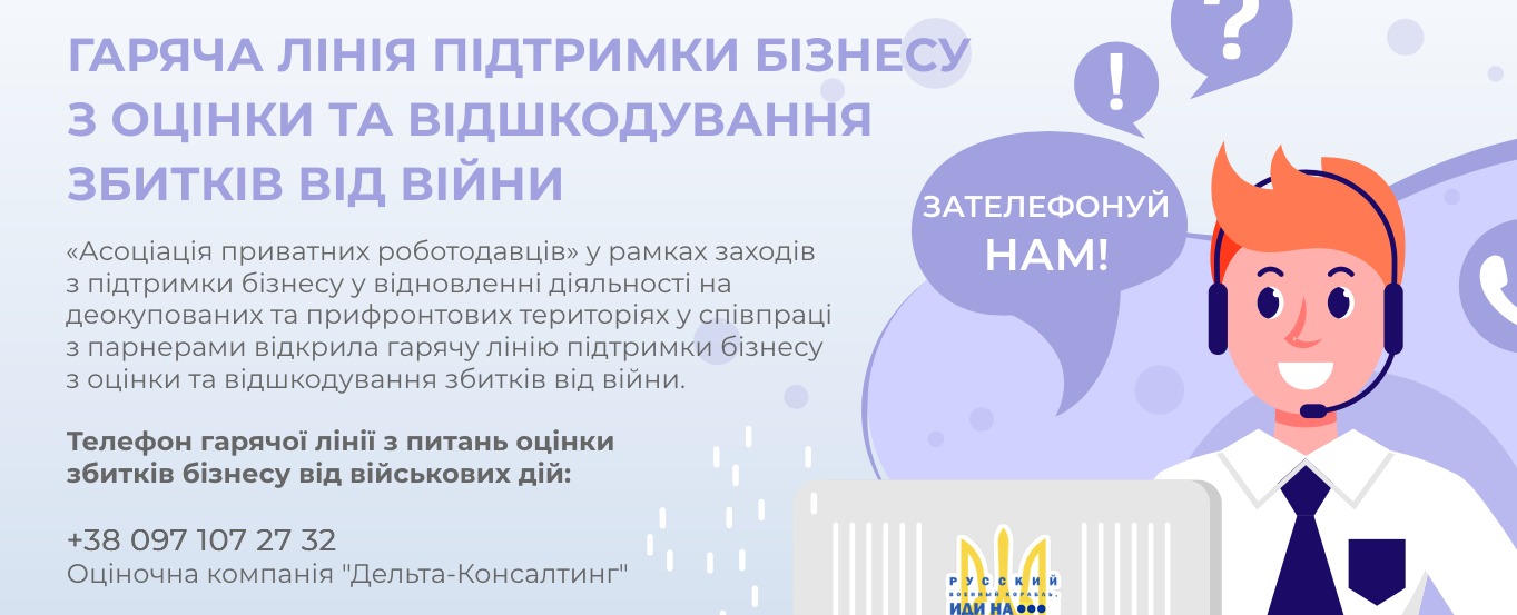 Телефон гарячої лінії з питань оцінки збитків бізнесу від військових дій: