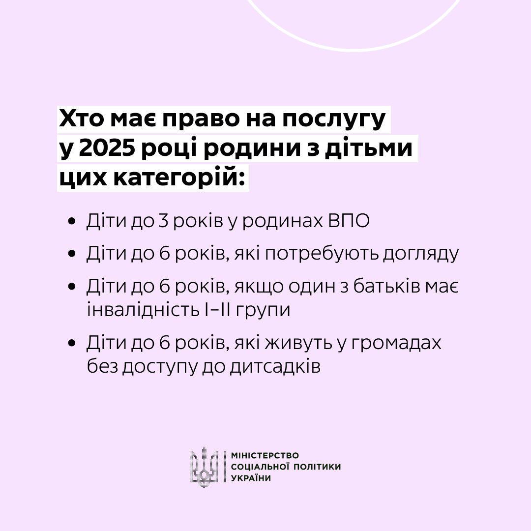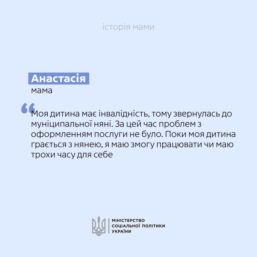«Муніципальна няня» - це послуга догляду за дитиною до досягнення 3- річного віку (або 6-річного віку у визначених випадках), що надається для підтримки батьків, опікунів дитини.