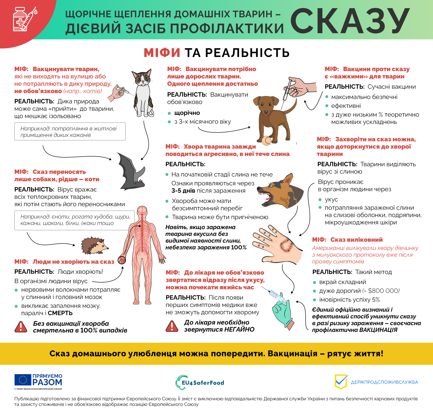 Для проведення подвірних щеплень просимо власників тварин забезпечити належні умови за місцем утримання тварин для проведення щеплення проти сказу. Вакцинація проти сказу – це не лише відповідальність власника тварини, а й гарантія безпеки для всього суспільства.
