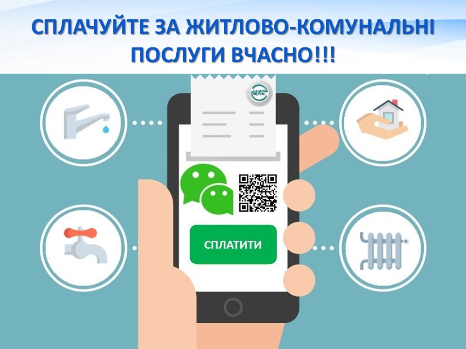 Шановні громадяни! Закликаємо вас своєчасно та в повному обсязі сплачувати за спожиті житлово-комунальні послуги, що в свою чергу дасть змогу підприємствам, надавачам цих послуг, забезпечувати своєчасно сплату податків, виплату заробітної плати працівникам та стабільну роботу цих підприємств.