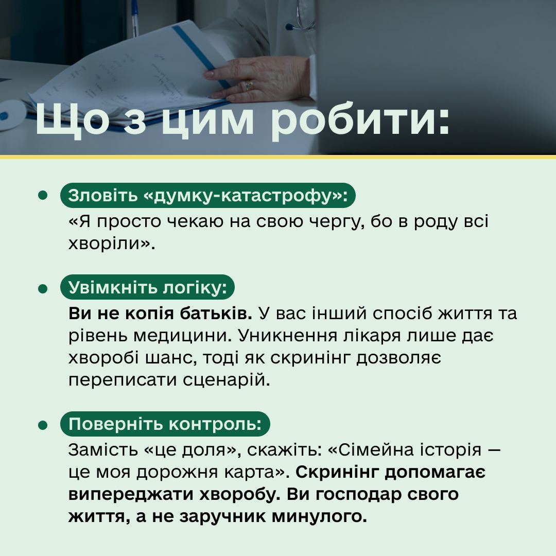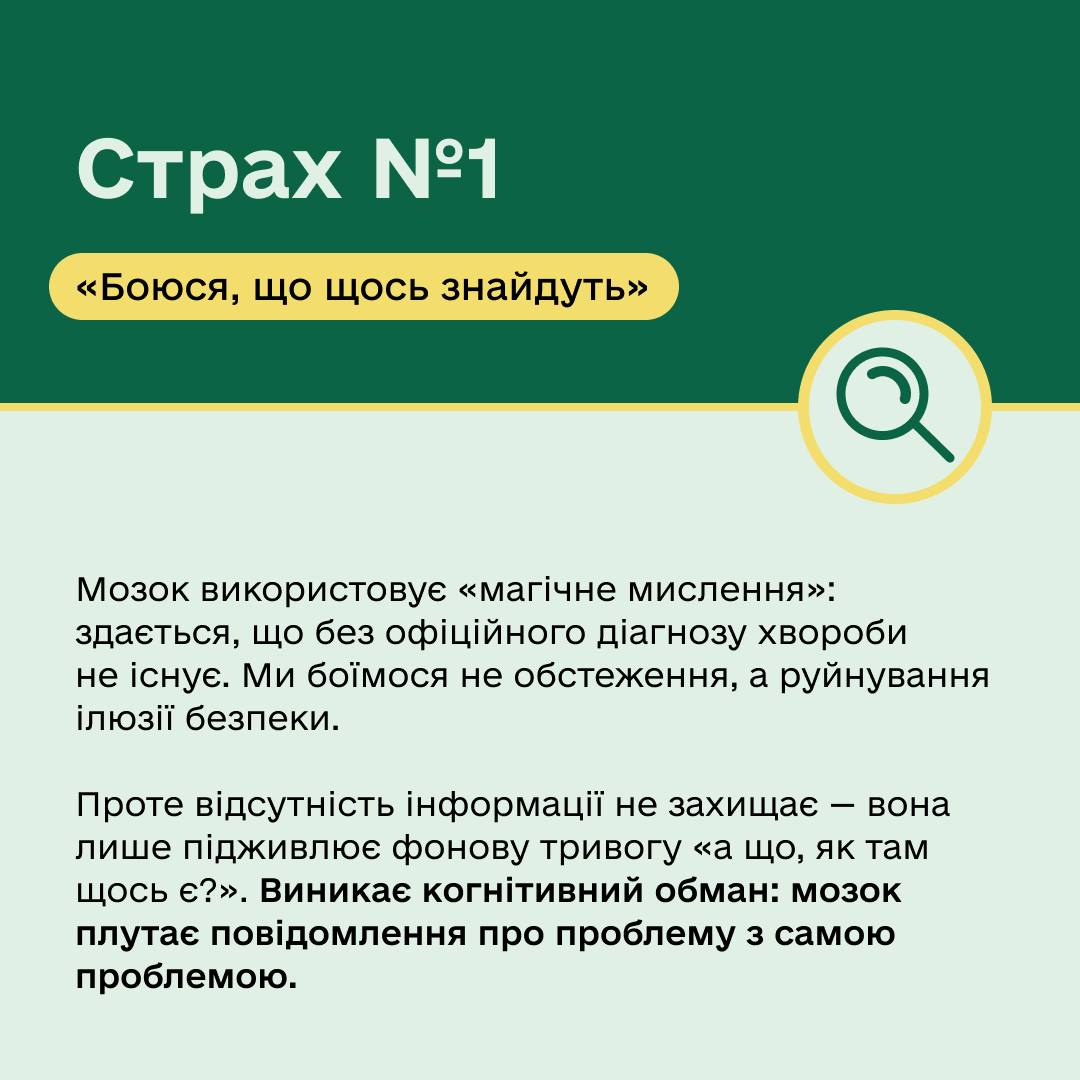 Натомість обстеження — це про знання, які дають можливість діяти усвідомлено й не дозволяти страхам керувати нашими рішеннями.