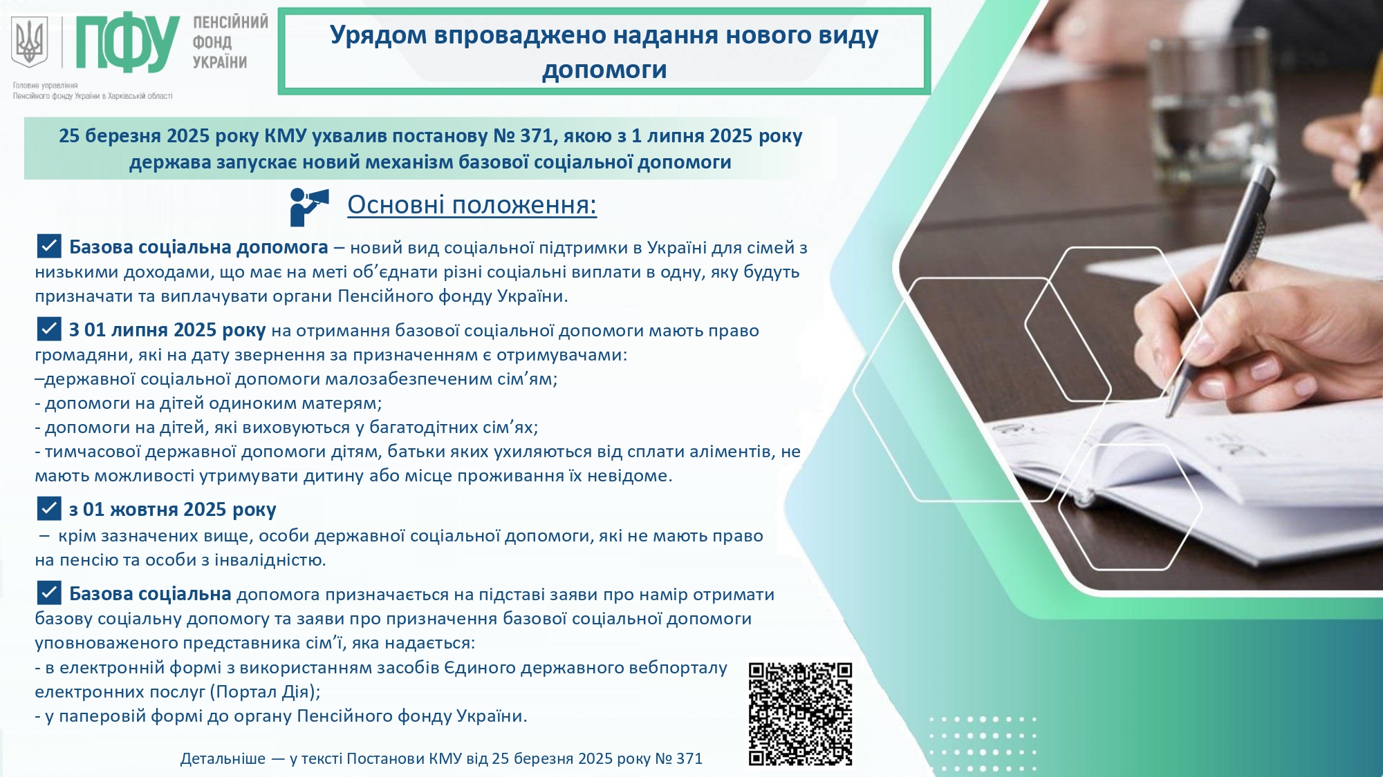 Цей новий вид виплати передбачений у межах Порядку реалізації експериментального проєкту щодо надання базової соціальної допомоги, який затверджено постановою Кабінету міністрів України від 25 березня 2025 року № 371.