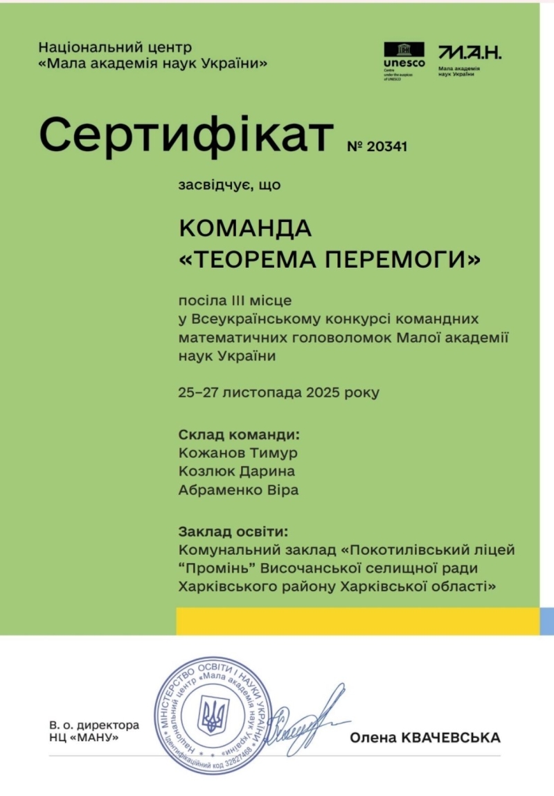 🔷 "Теорема перемоги" - ІІІ місце. Команда, яка розв'язує задачі так, ніби доводить світу: ми здатні більше, ніж від нас очікують.