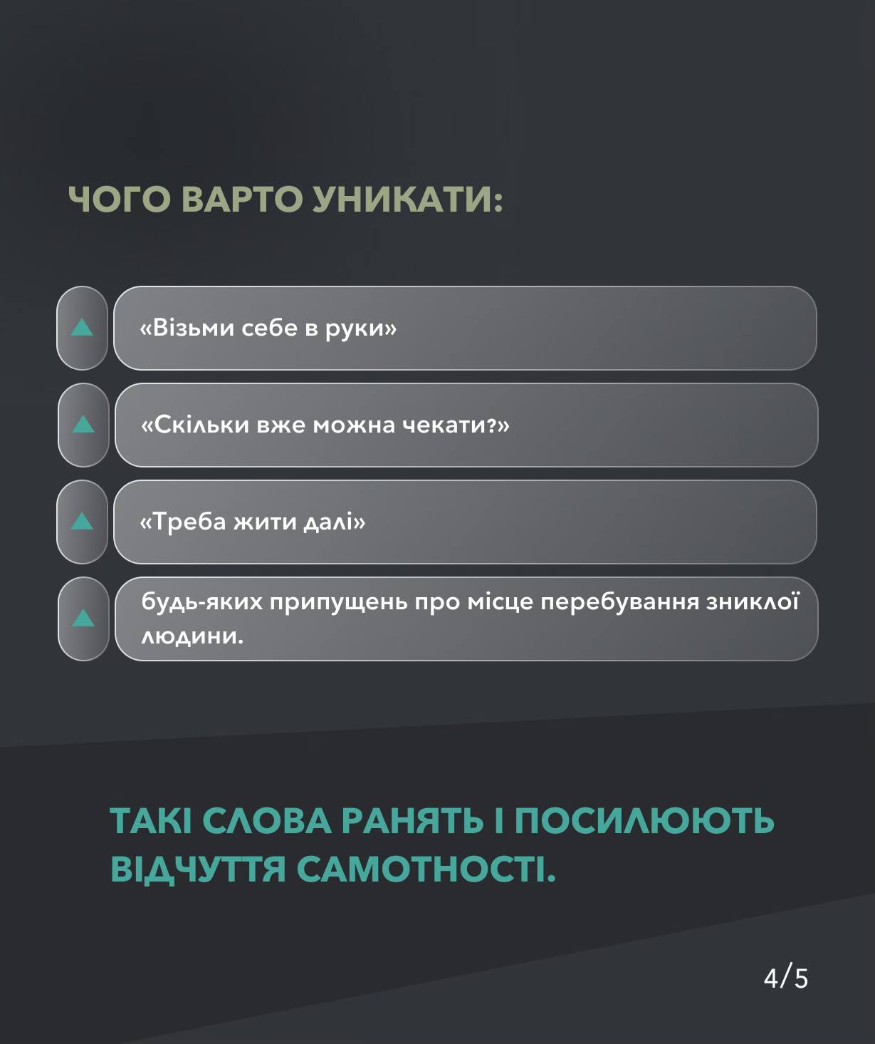 Рідні зниклих безвісти живуть у постійній невизначеності. У розмовах із ними важливо не нашкодити словами — навіть із добрих намірів.