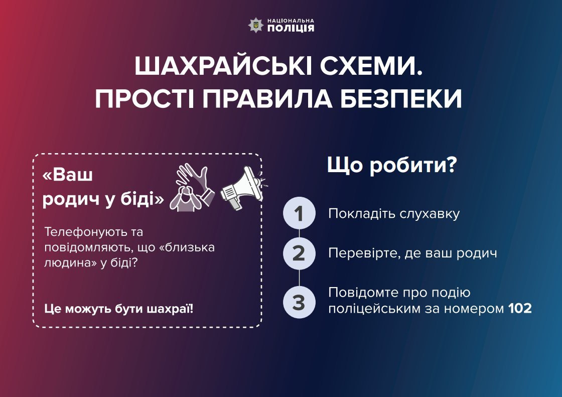 “Ваш родич у біді” - поліція розповідає про популярні шахрайські схеми