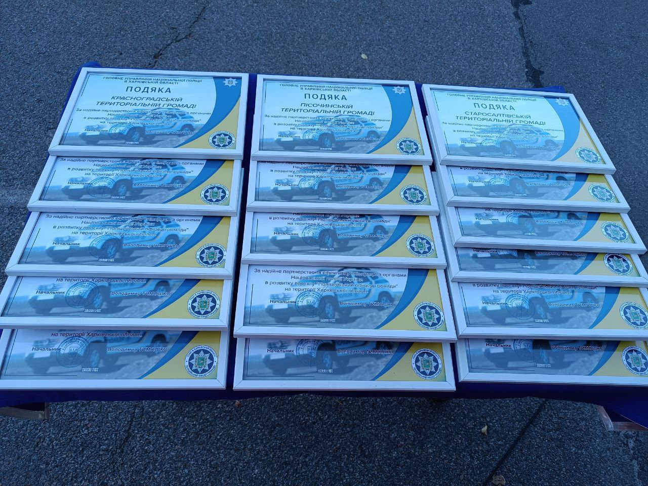 Сертифікати на отримання службових автівок працівникам поліції, які будуть нести службу на території 16 територіальних громад, вручив начальник Головного управління Нацполіції у Харківській області Володимир Тимошко.