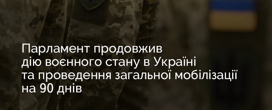 Верховна Рада України продовжила строк дії воєнного стану та загальної мобілізації