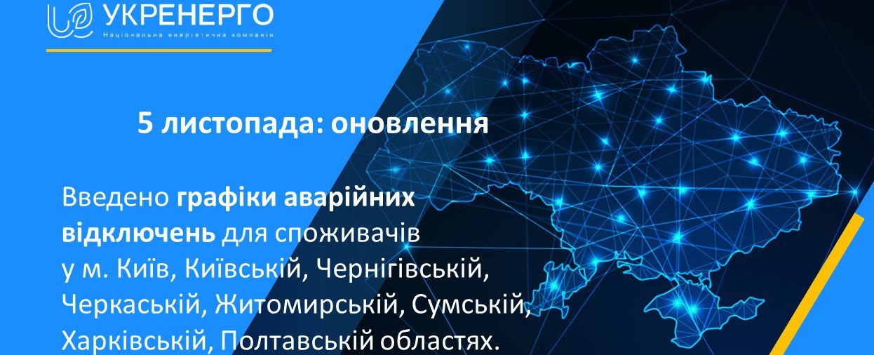 УКРЕНЕРГО ІНФОРМУЄ: Станом на 10:00 28 листопада внаслідок стрімкого зростання дефіциту потужності застосовуються аварійні відключення по всій території України